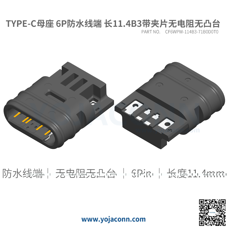 TYPE-C母座 6P防水线端 长11.4B3带夹片有电阻无凸台