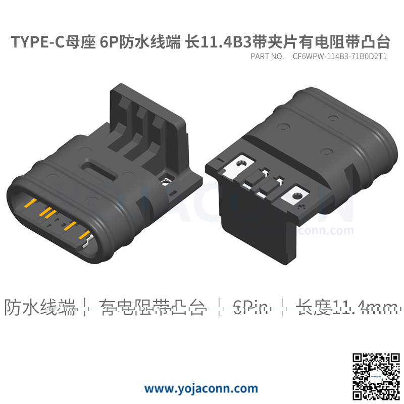 TYPE-C母座 6P防水线端 长11.4B3带夹片有电阻带凸台