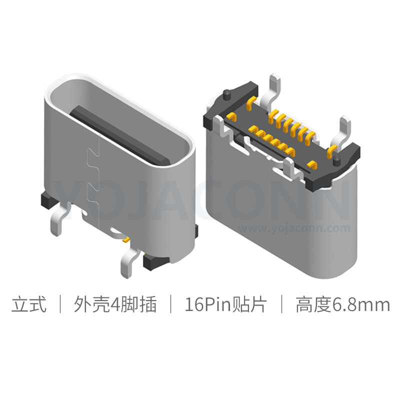 TYPE-C母座 16P立式四脚插 高6.8G3带夹片