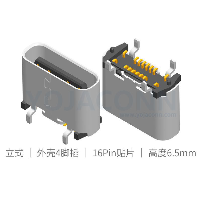 TYPE-C母座 16P立式四脚插 高6.5G3带夹片