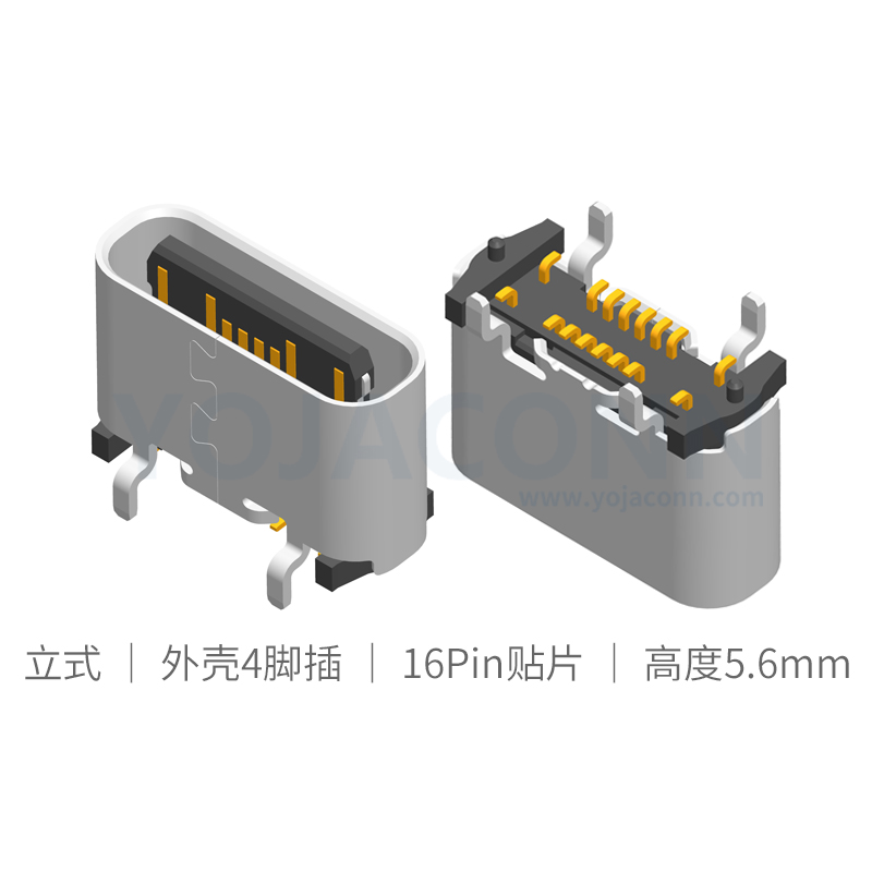 TYPE-C母座 16P立式四脚插 高5.6G3带夹片