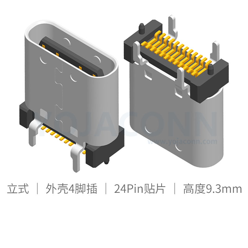 TYPE-C母座 24P立式四脚插 高9.3Z3带夹片